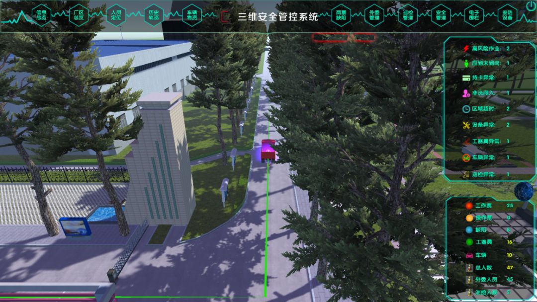 進出廠區(qū)的運送固廢車輛,危化品車輛、外來車輛、重型機械等安裝GPS定位。在系統(tǒng)中為車輛預(yù)設(shè)固定路線,并通過GPS進行追蹤,實現(xiàn)各類車輛的實時位置監(jiān)督、跟蹤其行駛軌跡,一旦發(fā)現(xiàn)偏離預(yù)設(shè)路線立即報警并推送相關(guān)管理人員。