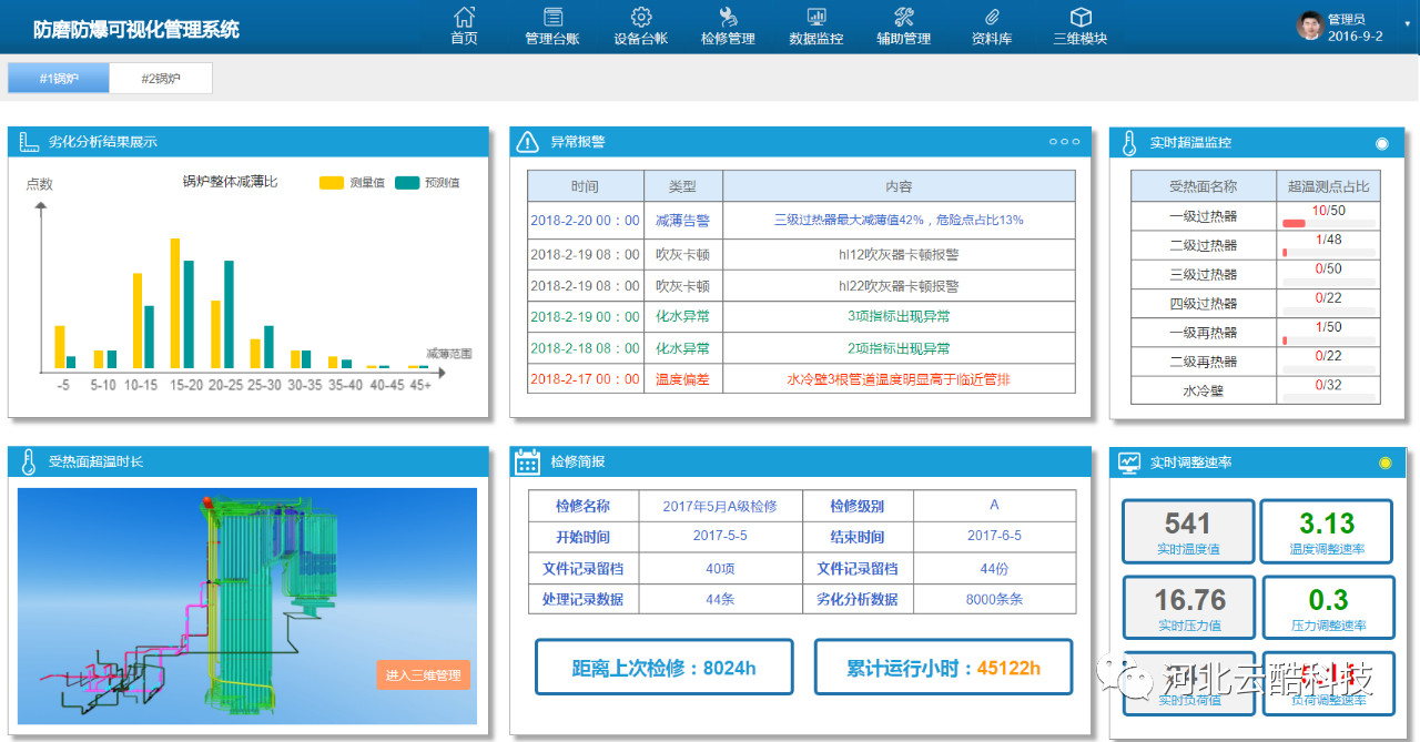云酷科技多年來專注電廠鍋爐安全,通過對“四管”問題的深入研究,研發(fā)了三維可視化鍋爐防磨防爆系統(tǒng),針對性的預(yù)防鍋爐泄爆等問題。系統(tǒng)憑借專業(yè)性和實用性深受用戶好評,能夠切實解決鍋爐安全管理問題。